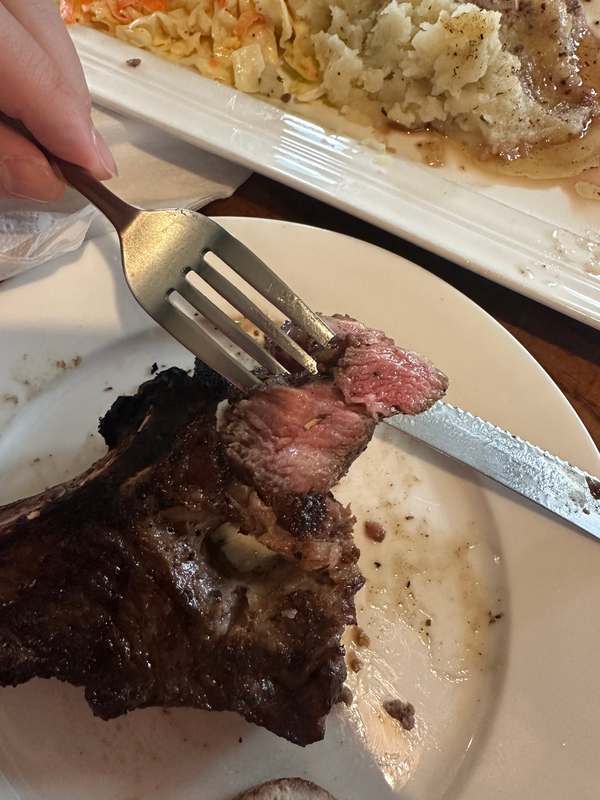 미듐 굽기 정도의 양갈비는 이 정도 굽기로 구워져 나오며,
