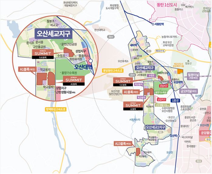 위치는 경기도 오산시 오산세교Cd-1블록, 호반써밋 라테라스