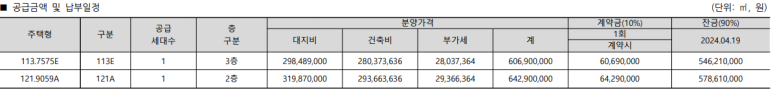 잔금을 `24.4.19에 납부해야하는 점 확인!!!