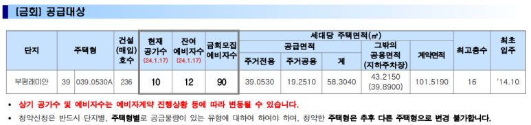 공급대상은 현재공가수 10호이지만 금회모집 예비자수90호를 선정한다 ㅎㅎ