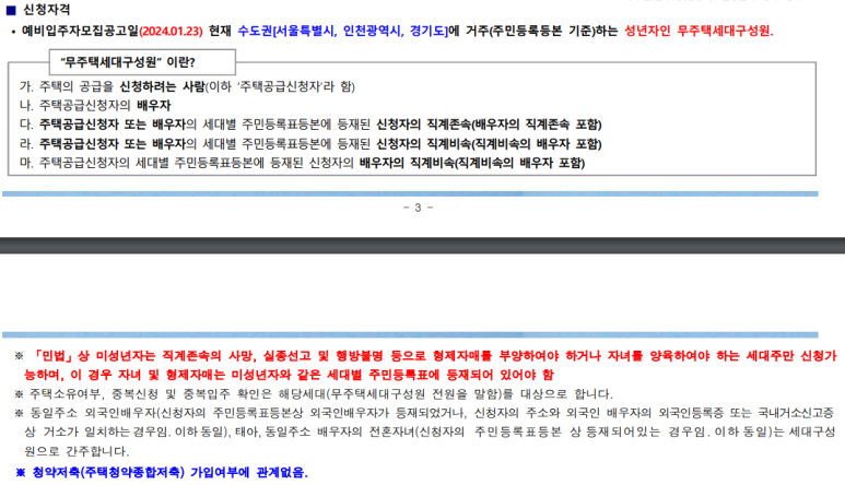 신청자격은 현재 수도권에 거주하는 성년자인 무주택구성원이다 ㅎㅎ