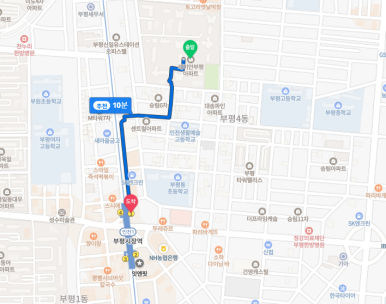 부평구청역까지는 도보 9분정도, 부평시장역은 10분정도 걸린다 ㅎㅎ