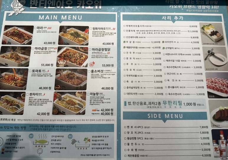 우리는 다양한 메뉴 중에 마라맛(43,000원)을 시켰다!