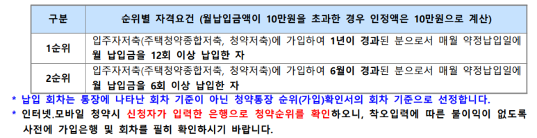 청약이 1년 경과되고 매월 납입금 12회이상 납입한 자가 1순위이다 ㅎㅎ