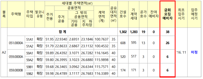 ❚공급대상 : 전용면적 60㎡이하 1,444세대 중 예비입주자 38세대