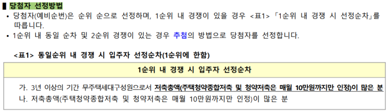 1순위내 경쟁시 선정순차에 따라서 결정한다 ㅎㅎ