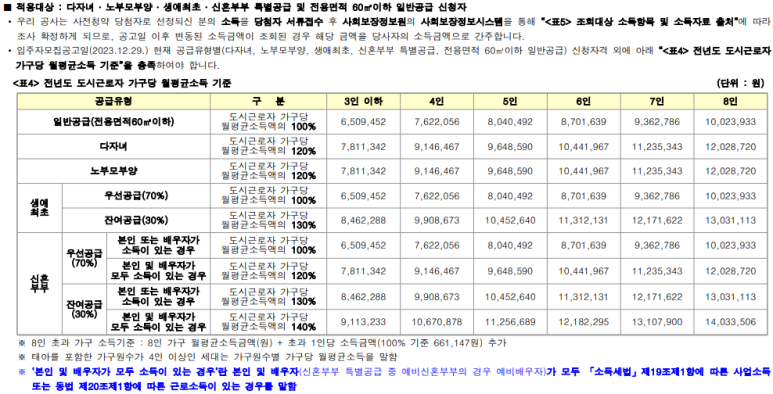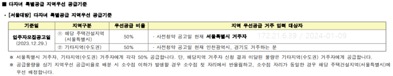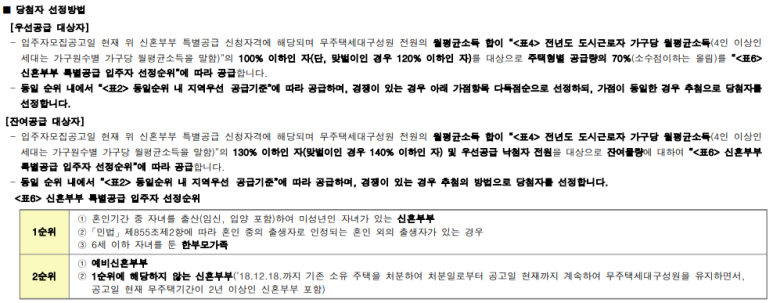 신혼부부, 생애최초, 노부모부양, 다자녀 특별공급
