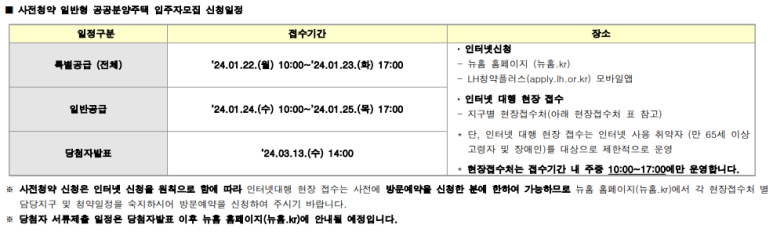 일반공급 `24.01.24(수) 10:00 ~ 25(목) 17:00까지