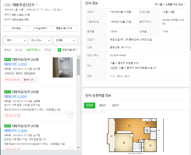 북쪽편 대방주공2단지 1995년식 아파트 58타입 기준 현재 최저가매물 9.3억