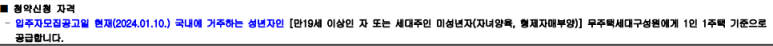 신청자격은 국내거주 성년자 무주택구성원이다~!