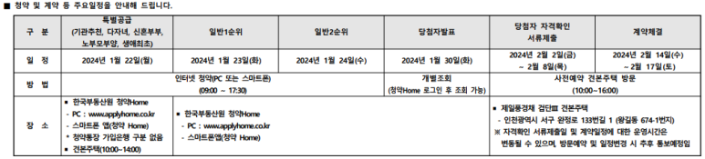 특별공급 `24.01.22(월) 09:00 ~ 17:30까지