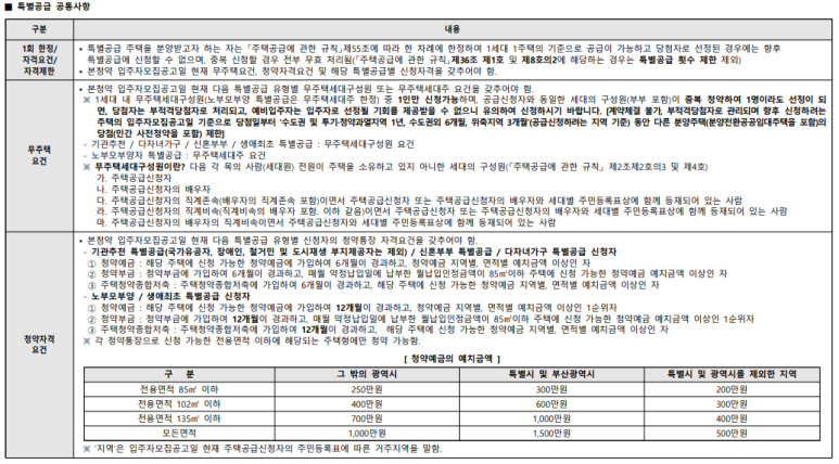 특별공급시에 공통사항이 있으니 확인 잘해보고~~