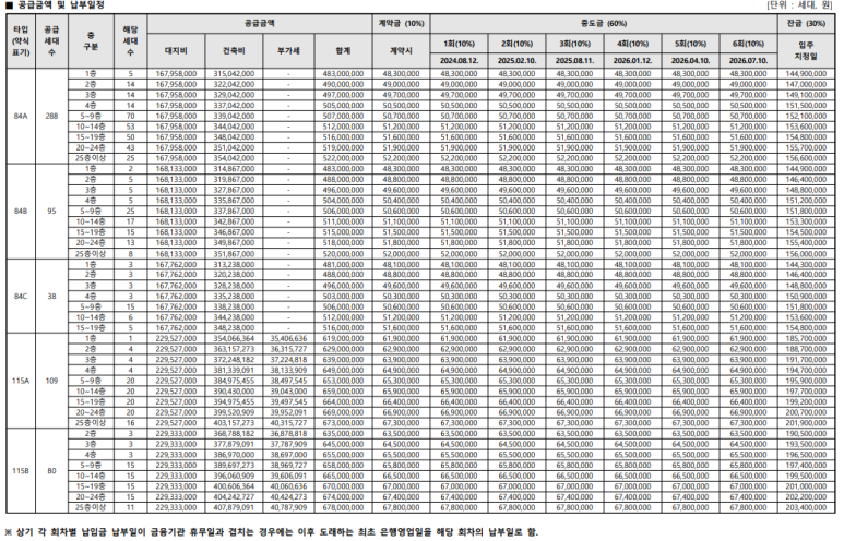 공급금액은 84타입 평균 5억정도, 115타입은 6.5억정도 구성 되어있네~~
